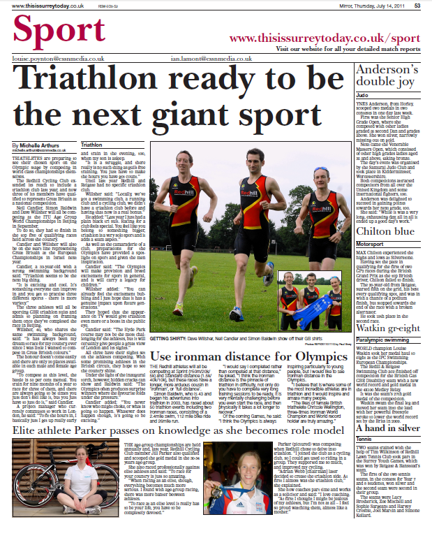 Surrey Mirror Sports Page of tri hopefulls of Redhill: